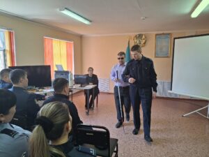 14 сәуір күні кітапханада Қазақстан Республикасы Ішкі істер министрлігі Қылмыстық-атқару жүйесі комитетінің Қарағанды облысы бойынша және Ұлытау облысы бойынша Қылмыстық атқару жүйесі департаменті қызметкерлеріне арналған семинар-тренинг өтті. «Көруі бойынша мүгедектігі бар адамдармен өзара қарым-қатынас этикасы» тақырыбындағы семинар-тренингке 35 адам қатысып, көруі бойынша мүгедектігі бар адамдармен қарым-қатынасу тақырыбы қарастырылды. Кітапхана қызметкерлері арнайы қарым-қатынас, ситуациялық көмек көрсету мүмкіндіктерін талқылап, тифлотехникалық құрал-жабдықтар мен макеттерге шолу жасады. Өзара ынтымақтастық аясындағы іс-шара кітапхана бөлімдеріне экскурсия жасаумен аяқталды.