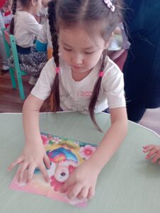 «Алмагүл» бөбекжайында «Балауса» клубымен бүлдіршіндерге сурет салу дағдысын, логикалық ойлау, еске түсіру, елестету қабілеттерін және өнерге баулу мақсатында «Мен суретші боламын» атты тәжірибе алаңы өткізілді. Түрлі тақырыпта салынған суреттер балалардың көркемдік ойлауын, қиял ұшқырлығын және эстетикалық талғамын айқын көрсетті. Қатысушылар бар ынтасымен еңбек етіп, қағаз қиындыларынан жасалған суреттерді құрастырды.