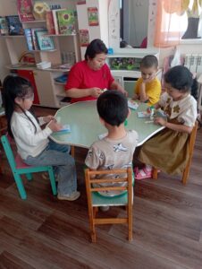 «Алмагүл» бөбекжайында «Балауса» клубы аясында бүлдіршіндер Ұлыстың ұлы күні – Наурыз мерекесіне орай «Ұлттық қолөнер – тәрбие көзі» атты әдемі ашық хаттар жасады. Балалар түрлі-түсті қағаздардан гүлдер қиып, күннің шуақты бейнесін салып, өз қолдарымен ерекше туындылар дайындады. Әрбір ашықхатта – баланың таза көңілі, қуанышы мен мерекеге деген ыстық ықыласы бар.Бұл шығармашылық жұмыс арқылы бүлдіршіндер Наурыздың мәнін түсініп, ұлттық дәстүрлерге деген сүйіспеншіліктерін арттырды.