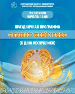 23 октября в 11.00 приглашаем Вас на праздничное мероприятие, приуроченное ко Дню Республики Казахстан «Я патриот своей страны»